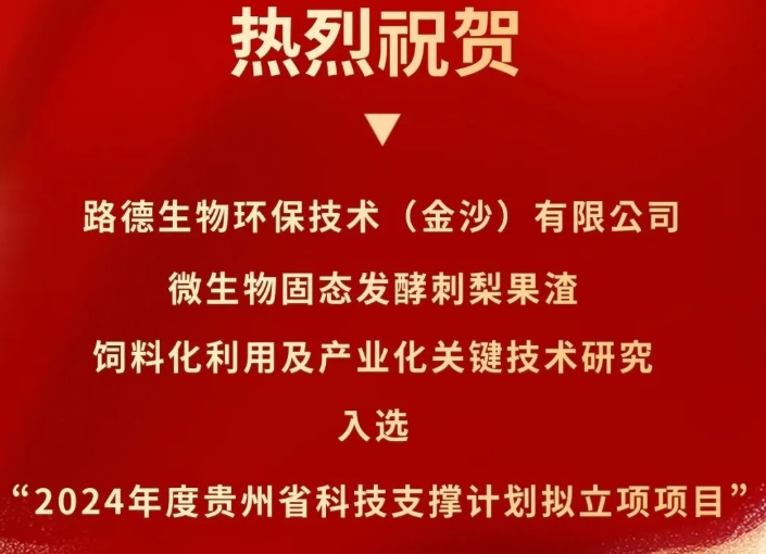 近日,貴州省科學(xué)技術(shù)廳公布了省科技計(jì)劃擬立項(xiàng)項(xiàng)目,路德環(huán)境旗下子公司——路德生物環(huán)保技術(shù)(金沙)有限公司承擔(dān)的“微生物固態(tài)發(fā)酵刺梨果渣飼料化利用及產(chǎn)業(yè)化關(guān)鍵技術(shù)研究”項(xiàng)目,入選“2024年度貴州省科技支撐計(jì)劃擬立項(xiàng)項(xiàng)目”。 此項(xiàng)殊榮,是路德環(huán)境以技術(shù)創(chuàng)新,引領(lǐng)有機(jī)糟渣資源化業(yè)務(wù)從白酒糟向其它食品飲料糟渣多元拓進(jìn)、開辟公司可持續(xù)發(fā)展新賽道的重要一步。未來,隨著該科研項(xiàng)目不斷取得新突破,勢(shì)必將與貴州刺梨產(chǎn)業(yè)“延伸產(chǎn)業(yè)鏈、完善供應(yīng)鏈、提升價(jià)值鏈”形成高度匹配,為貴州省打造百億級(jí)特色優(yōu)