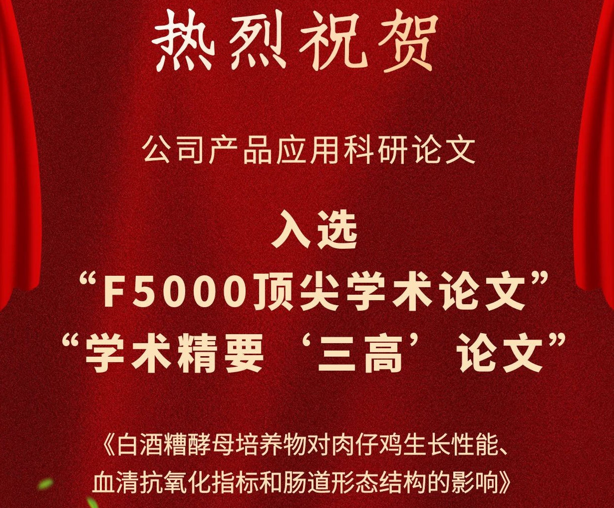 近日,公司產(chǎn)品應(yīng)用科研領(lǐng)域又聞佳訊傳來! 公司與中國農(nóng)業(yè)科學(xué)院飼料研究所家禽營養(yǎng)與飼料創(chuàng)新團隊共同完成并發(fā)表于《動物營養(yǎng)學(xué)報》(2019,31(5): 2357-2366)的學(xué)術(shù)論文—《白酒糟酵母培養(yǎng)物對肉仔雞生長性能、血清抗氧化指標(biāo)和腸道形態(tài)結(jié)構(gòu)的影響》,入選2022年度“領(lǐng)跑者5000—中國精品科技期刊頂尖學(xué)術(shù)論文(F5000)”和學(xué)術(shù)精要(2023年5-6月)高PCSI論文、高被引論文和高下載論文。 該論文探究了公司白酒糟酵母培養(yǎng)物對肉仔雞生長性能、血清抗氧化指標(biāo)和腸道形態(tài)結(jié)構(gòu)的影響。研究表明,飼糧添加白酒糟酵母