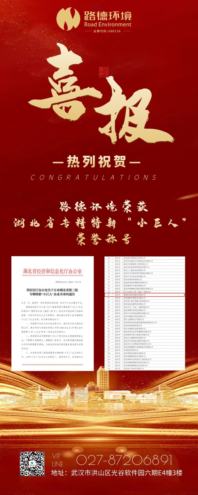 喜報:路德環(huán)境榮獲2021年湖北省專精特新“小巨人”榮譽稱號