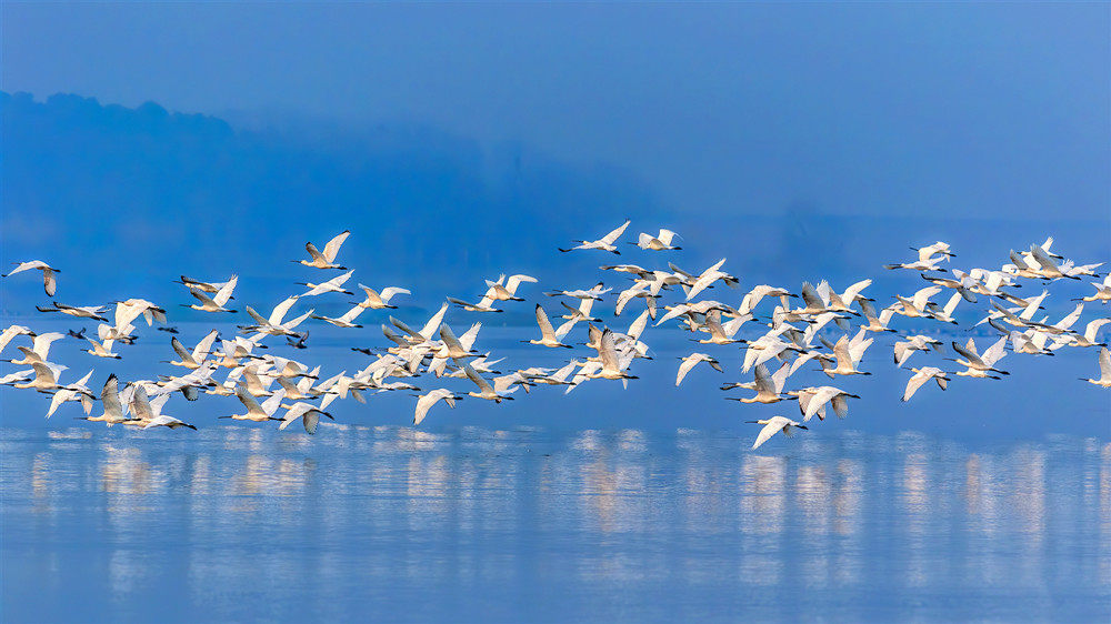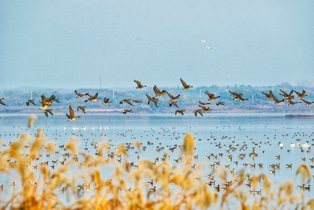 安山國(guó)家濕地公園候鳥(niǎo)翔集。新華網(wǎng)發(fā)