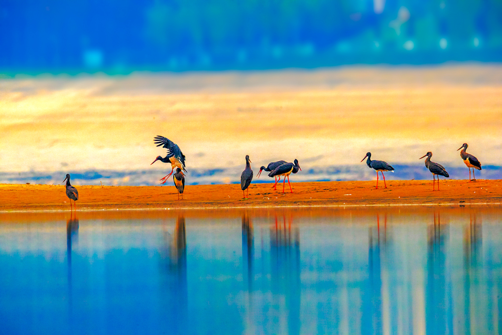 這里,是全球極度瀕危動(dòng)物青頭潛鴨的“中國(guó)最南繁殖地”,它也因此被戲稱“武漢鴨”;也是大名鼎鼎的“五彩斑斕的黑”——國(guó)家一級(jí)重點(diǎn)保護(hù)野生動(dòng)物黑鸛,連續(xù)9年擇居的越冬之地;