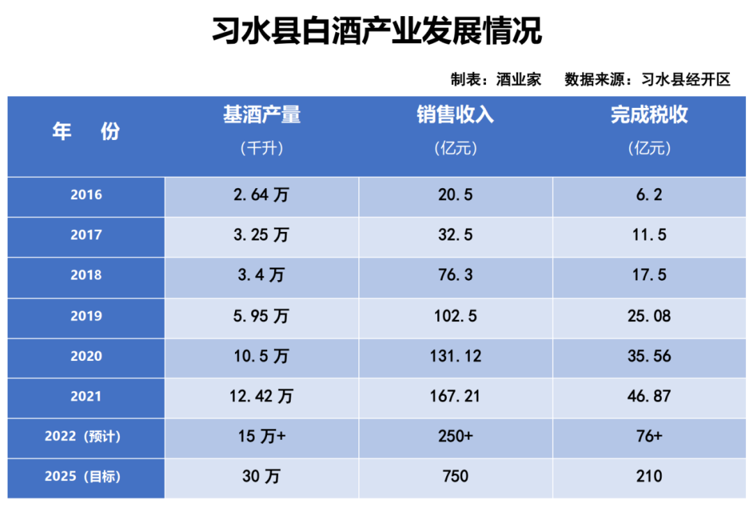 按照習(xí)水產(chǎn)區(qū)的發(fā)展規(guī)劃,到“十四五”末,習(xí)水產(chǎn)區(qū)將力爭實現(xiàn)白酒產(chǎn)能30萬噸,白酒工業(yè)總產(chǎn)值570億元,白酒銷售收入750億元,白酒稅收210億元,實現(xiàn)白酒產(chǎn)能、產(chǎn)值、增加值、利稅“四個翻番”的目標(biāo)。