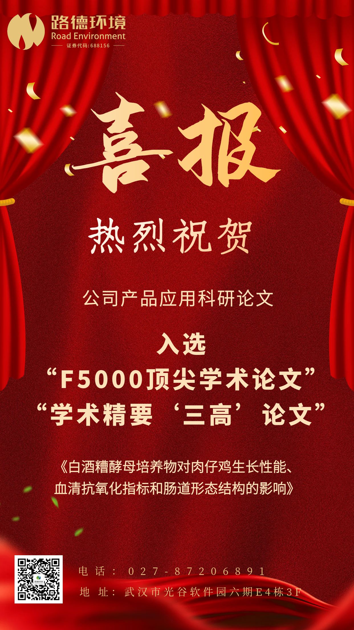 【路德·喜報】熱烈祝賀公司產(chǎn)品應(yīng)用科研成果入選“F5000論文”和“學(xué)術(shù)精要‘三高’論文”