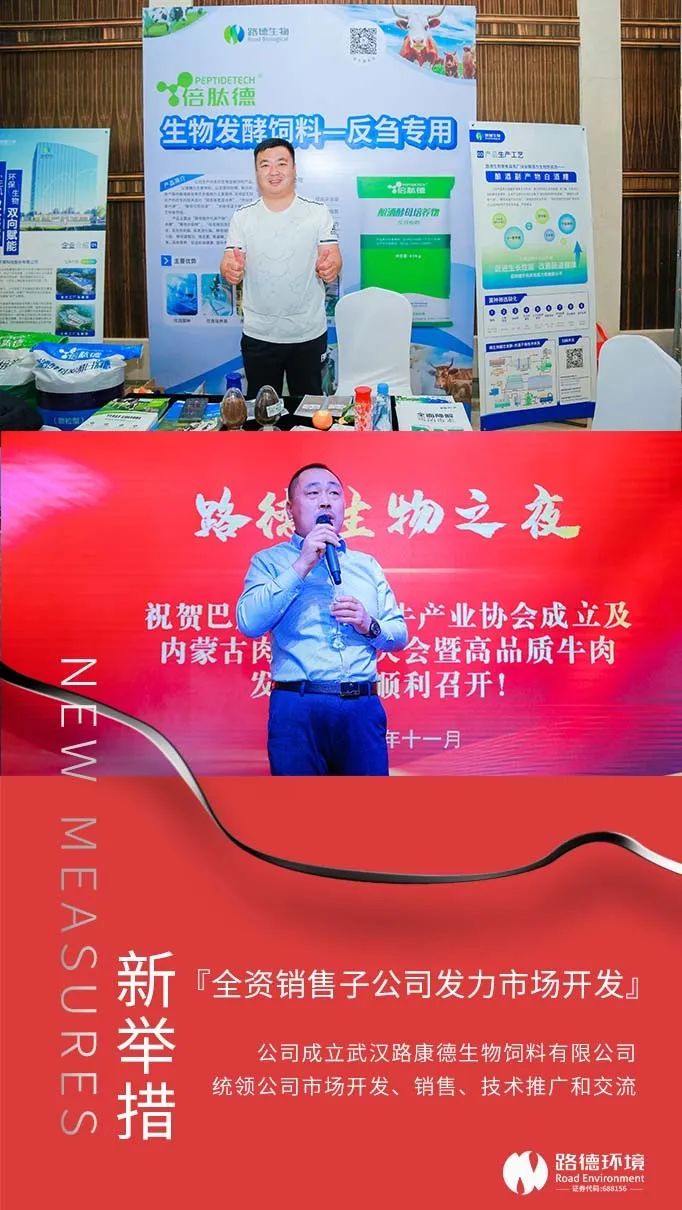2023年,公司白酒糟生物發(fā)酵飼料產(chǎn)品先后亮相河北首屆唐羊文化節(jié)和內(nèi)蒙古肉牛產(chǎn)業(yè)大會,借力行業(yè)盛會,加強品牌建設(shè)和推廣,聚力市場開發(fā)。12月,公司成立全資銷售子公司——武漢路康德生物飼料有限公司,統(tǒng)領(lǐng)公司市場開發(fā)、產(chǎn)品銷售、生物技術(shù)推廣和交流。