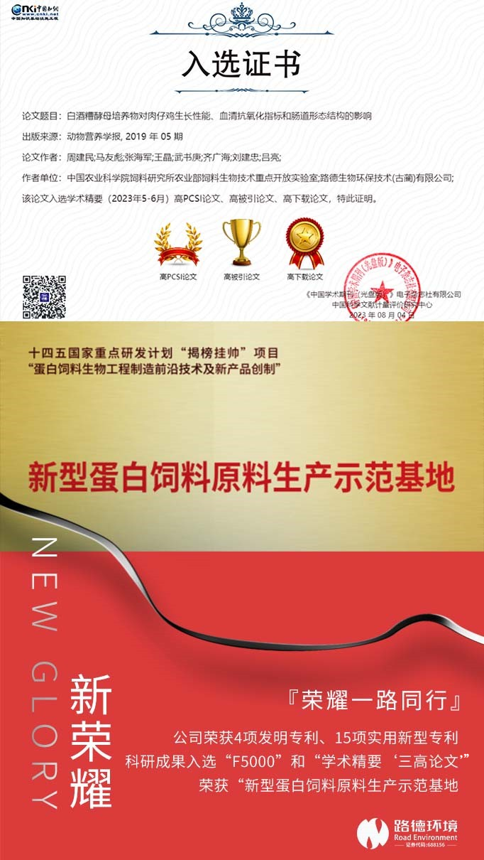 公司榮獲19項技術(shù)專利(4項發(fā)明專利、15項實用新型專利);合成生物科研項目入選湖北省科技廳2023年省科技計劃立項項目;產(chǎn)品應(yīng)用科研成果入選“F5000”和“學(xué)術(shù)精要‘三高論文’”;公司榮獲“新型蛋白飼料原料生產(chǎn)示范基地”稱號;河湖淤泥處理項目獲評“2023年度武漢環(huán)保產(chǎn)業(yè)優(yōu)秀環(huán)保項目案例”;獲評“中核集團合格供應(yīng)商”。