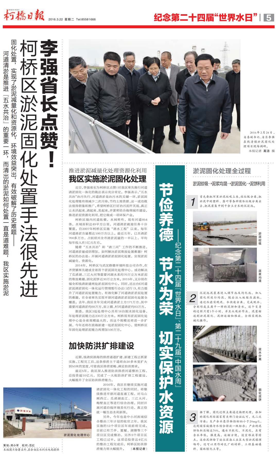 2016年,公司在紹興柯橋的淤泥固化處理項(xiàng)目獲浙江省政府贊譽(yù) 圖片來源:柯橋日?qǐng)?bào)