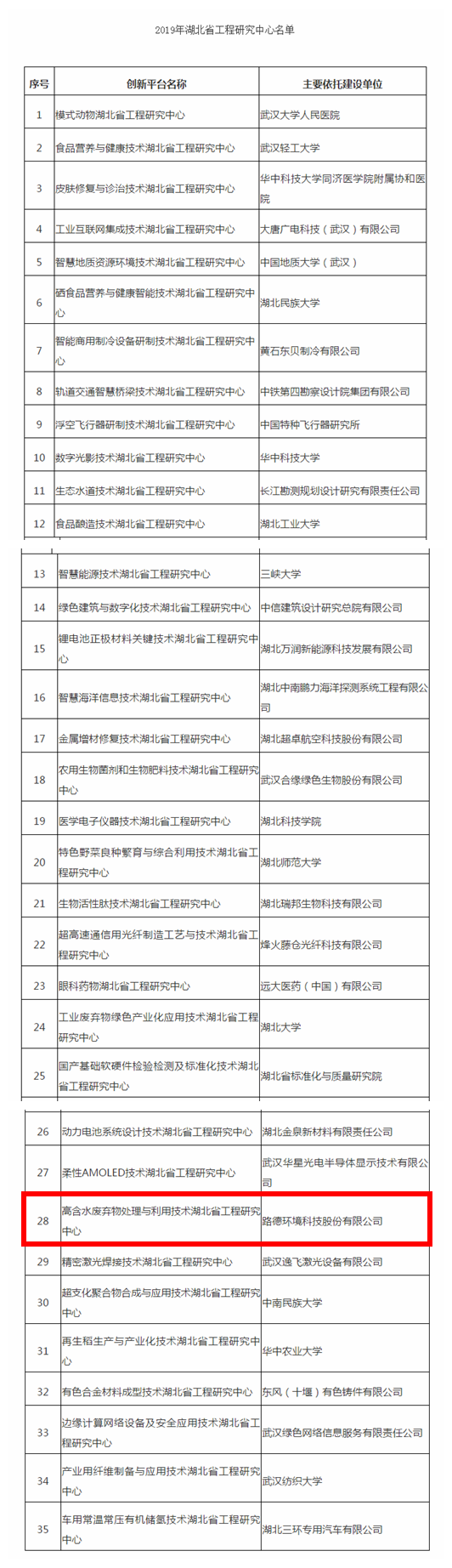 熱烈祝賀路德環(huán)境科技股份公司于2019年9月獲評(píng)“高含水廢棄物處理與利用技術(shù)湖北省工程研究中心”,同期入選的還有武漢大學(xué)、華中農(nóng)業(yè)大學(xué)等高等院校及科研院所。 獲評(píng)該中心是對(duì)公司數(shù)十年創(chuàng)新能力及研究成果的極大肯定,為我公司跨界水利、市政、環(huán)保、微生物等領(lǐng)域進(jìn)行研發(fā)儲(chǔ)備提供了堅(jiān)實(shí)的平臺(tái)條件。 “湖北省工程研究中心”是湖北省發(fā)改委為加快構(gòu)建完善區(qū)域創(chuàng)新體系,提升我省戰(zhàn)略性新興產(chǎn)業(yè)和優(yōu)勢(shì)特色領(lǐng)域核心競(jìng)爭(zhēng)力和可持續(xù)發(fā)展能力。此平臺(tái)要求企業(yè)具有主持省級(jí)及以上重點(diǎn)科研項(xiàng)目的經(jīng)歷,具備良好的產(chǎn)學(xué)研合作基礎(chǔ),擁有一批具有自主知識(shí)產(chǎn)權(quán)、有待工程化開(kāi)發(fā)、技術(shù)含量高和市場(chǎng)前景好的科技成果和技術(shù)儲(chǔ)備;以及先進(jìn)的研發(fā)試驗(yàn)基礎(chǔ)設(shè)施配套條件和較高水平的研究開(kāi)發(fā)和技術(shù)集成能力及相應(yīng)的人才隊(duì)伍。