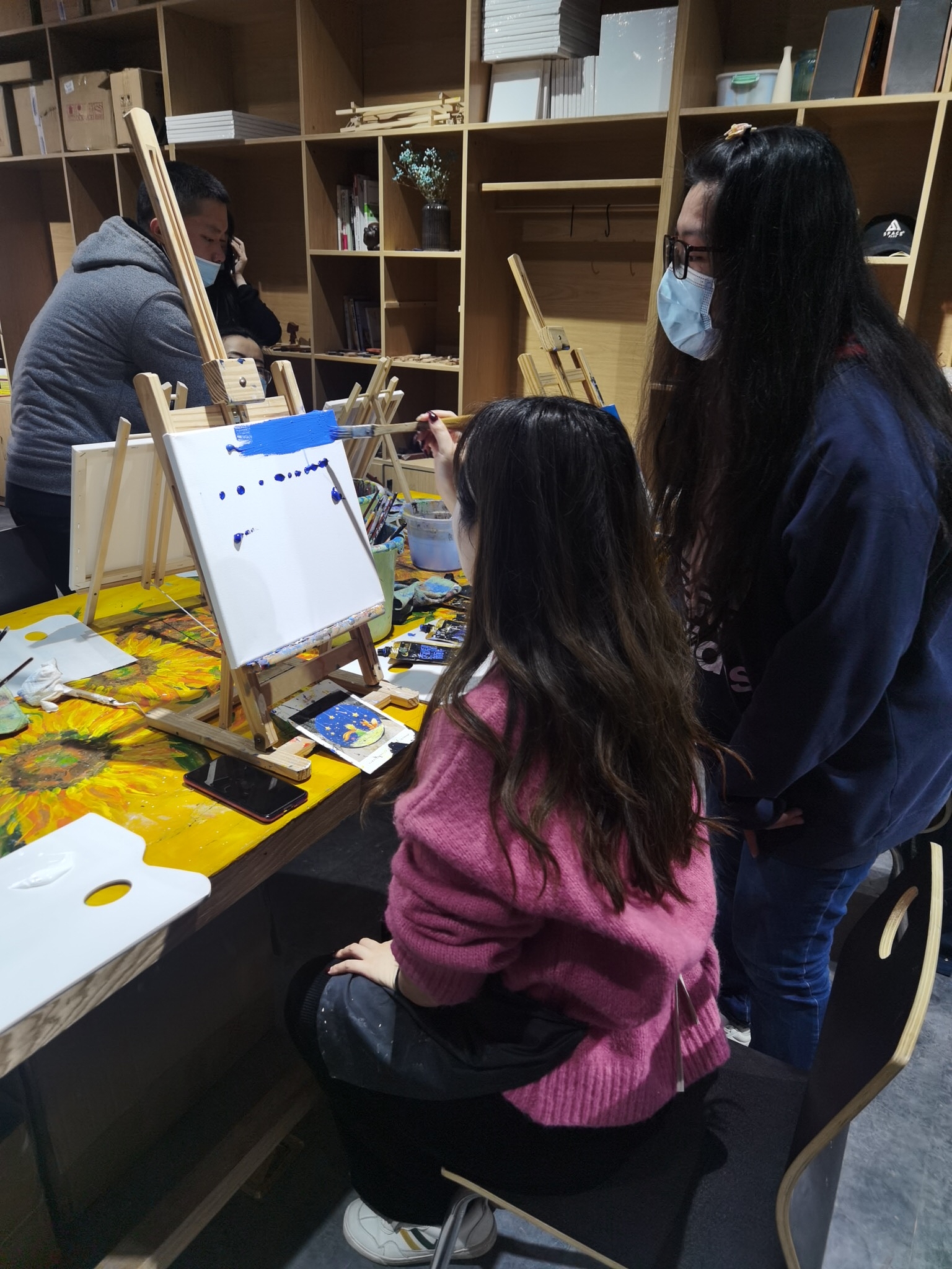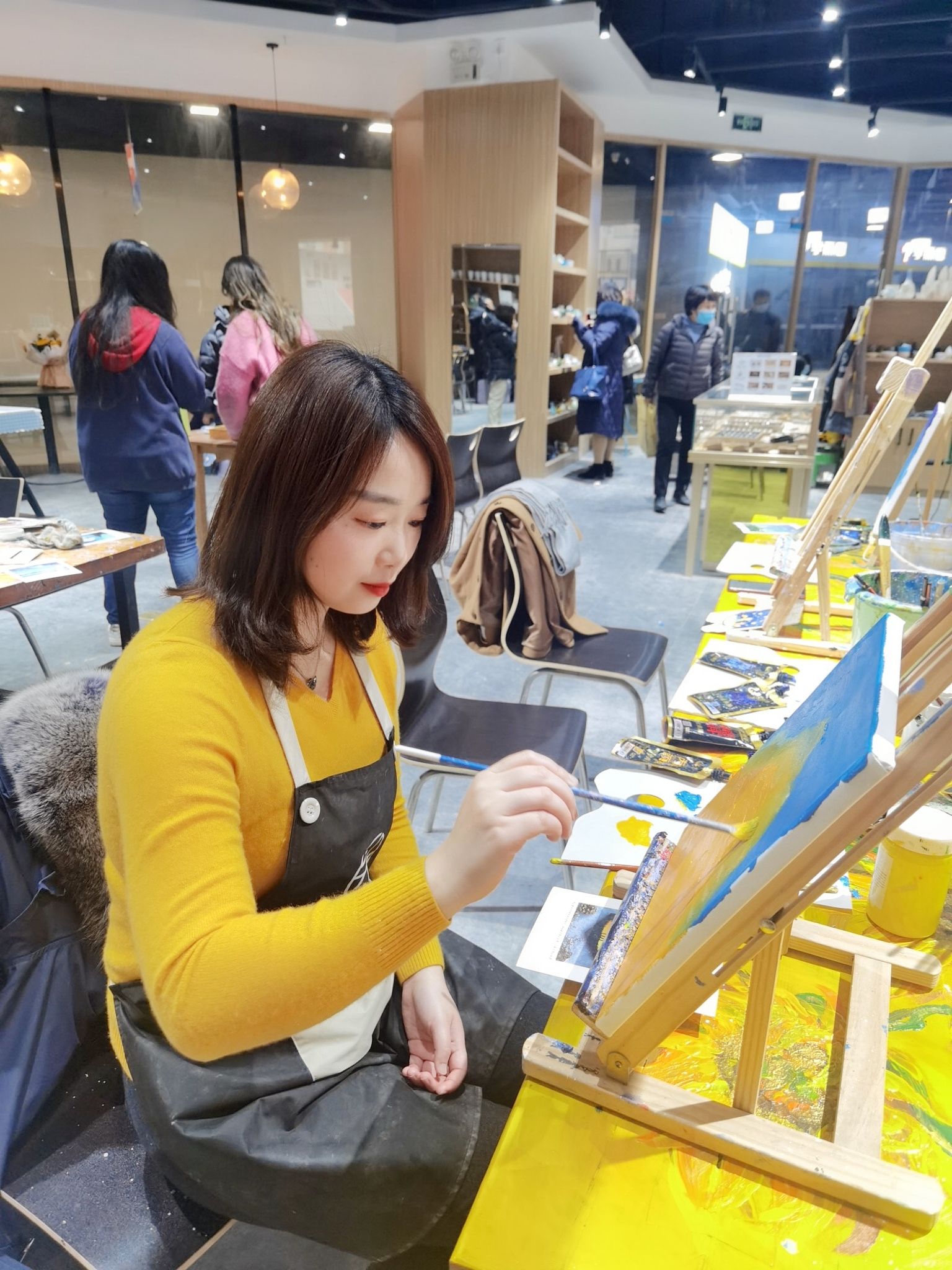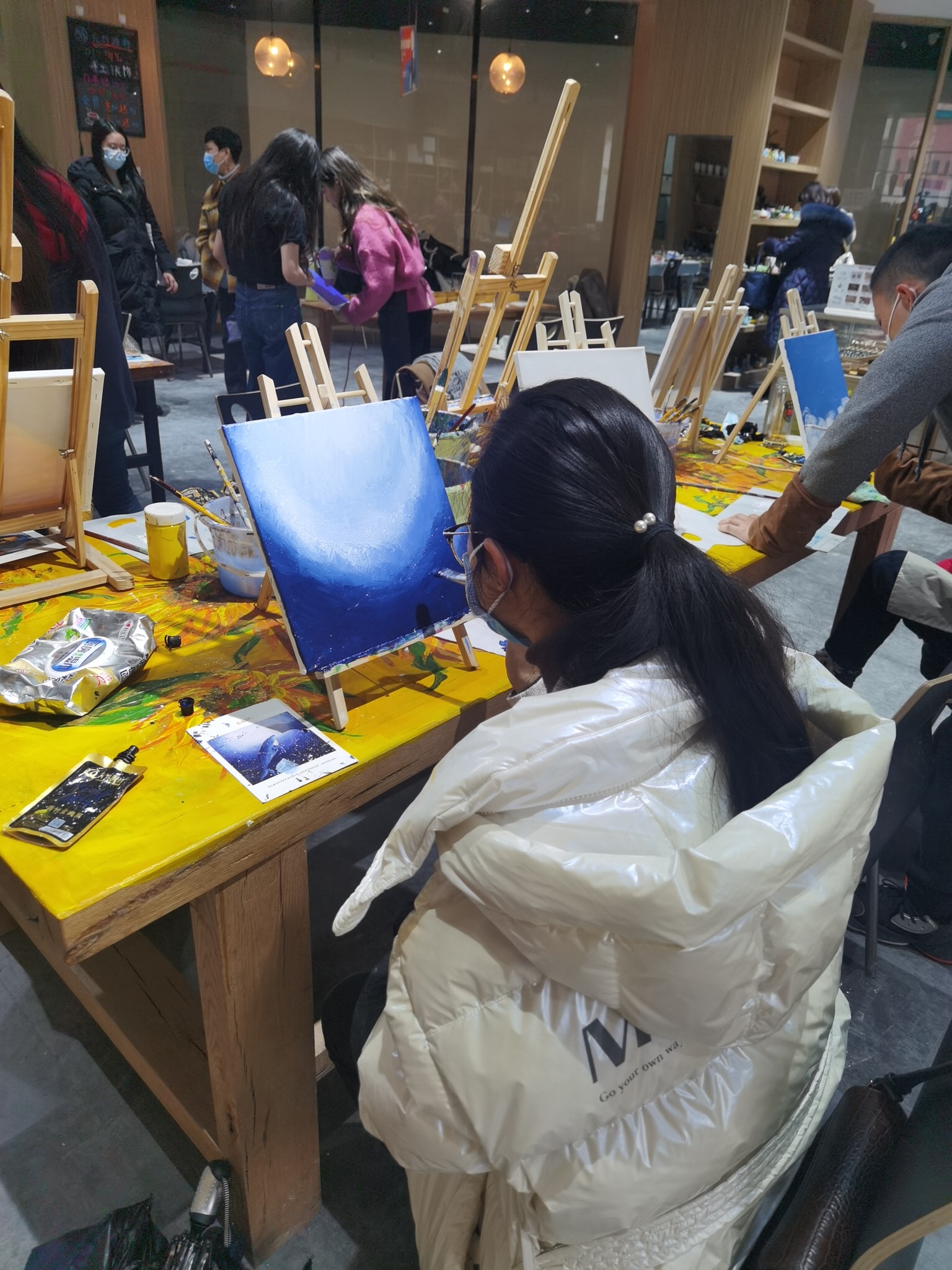 一張“白紙”的畫板上,大家大膽的調(diào)色、上色、勾勒,在專業(yè)老師的指導和加工下,經(jīng)過兩小時的精心創(chuàng)作,一幅幅生動、精美的裝飾畫躍然紙上。
